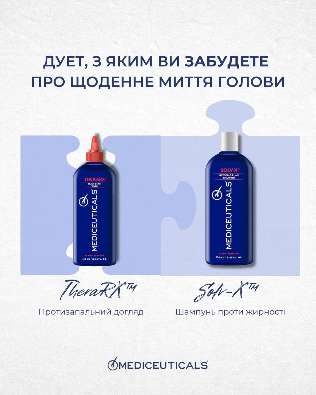 Набір Mediceuticals протизапальний — це професійне рішення для комплексного догляду за шкірою голови, схильною до надмірної жирності, подразнень та запальних процесів. До складу набору входять два високоефективні засоби: лікувальний очищувач TheraRX та терапевтичний шампунь Solv-X. Разом вони забезпечують глибоке очищення, антибактерицидну дію та нормалізацію роботи сальних залоз.